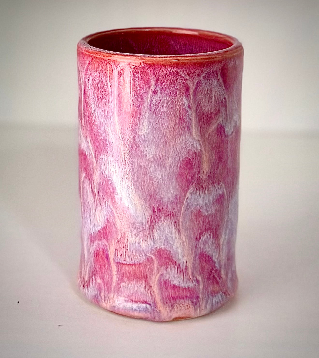 Add a playful touch to your meals with this 2pc set including a plate perfect for brunch or lunch, with a fun wavy rim and a unique cup in a vibrant pink and blue design inspired by a frozen pond. Sure to add a fun twist to any occasion!